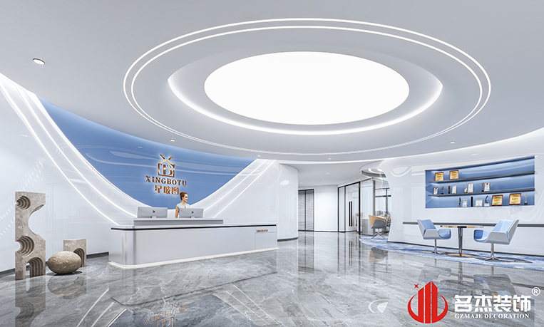 整體使用時尚簡約的風(fēng)格,讓辦公空間看起來更加簡潔,同時在不同區(qū)域使用藍色作為點綴色,給空間增添了幾分科技感的同時,也讓空間變得不那么單調(diào)。前臺區(qū)域使用圓弧造型的吊頂,搭配弧線形的背景墻,形成一種呼應(yīng)的同時,還能夠增加前臺空間的層次感。在辦公區(qū)域使用藍色噴漆,區(qū)別于傳統(tǒng)的黑白灰,讓空間更加具有辨識度。